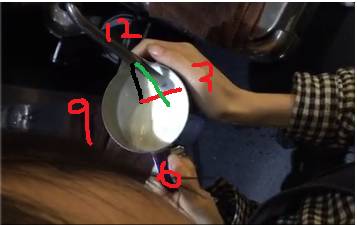 插入點的位置會找了!奶缸的姿勢也學會了!最后我再來說說一個新手很容易犯的錯誤!用一只手打奶泡!沒錯是用一只手打奶泡!