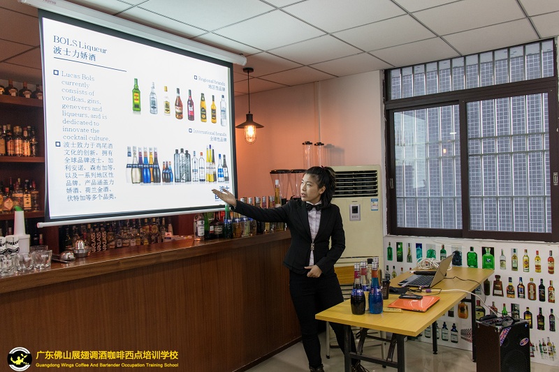 BOLS中國南區品牌大使謝思明KAYLS TSE 與大家相聚在佛山展翅調酒咖啡西點培訓學校,一起進入BOLS雞尾酒分享,分享BOLS的品牌歷程及品牌理念,介紹BOLS新的產品系列風味、同時與大家一起分享時下飲品/雞尾酒/咖啡潮流、及指導如何使用BOLS品牌調制雞尾酒、將帶你走進BOLS風味與注入BOLS世界新活力!