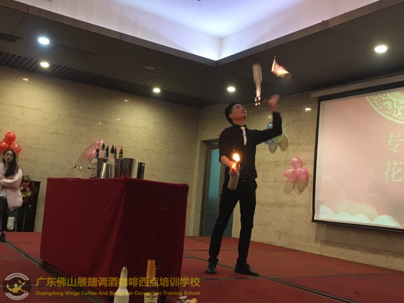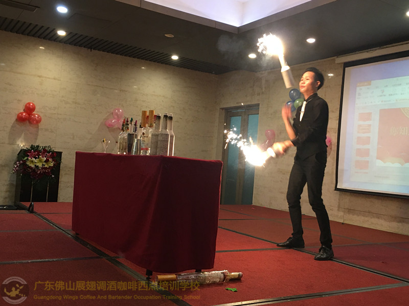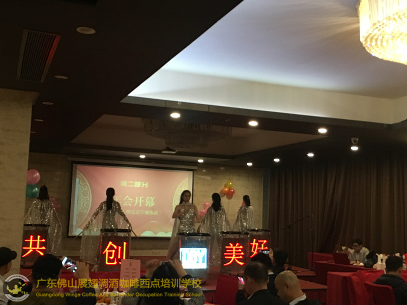2018年1月26日佛山展翅調酒咖啡西點培訓學校的調酒師朱歡洪再次受邀出席廣州大本營貿易有限公司的迎春晚會,并擔任活動現場花式調酒演出嘉賓。如果你想成為一名優秀的花式調酒師,要不斷的實踐、學習、讓自己擁有更豐富的知識。當你的技術得到認可的時候,你才真正的贏得了他人的尊重http://www.gradeadeli.com 接下來,讓我們一起回顧一下當天晚上現場的氣氛吧!