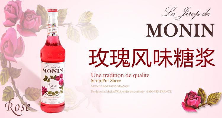 1. Monin的玫瑰糖漿是明星產(chǎn)品,毫不吝嗇的使用上等玫瑰精油。關(guān)于取舍的話大家看看自己的配方是不是需要用到糖漿。取得度相對(duì)來說比較簡(jiǎn)單,風(fēng)味也比較柔和好把控。
