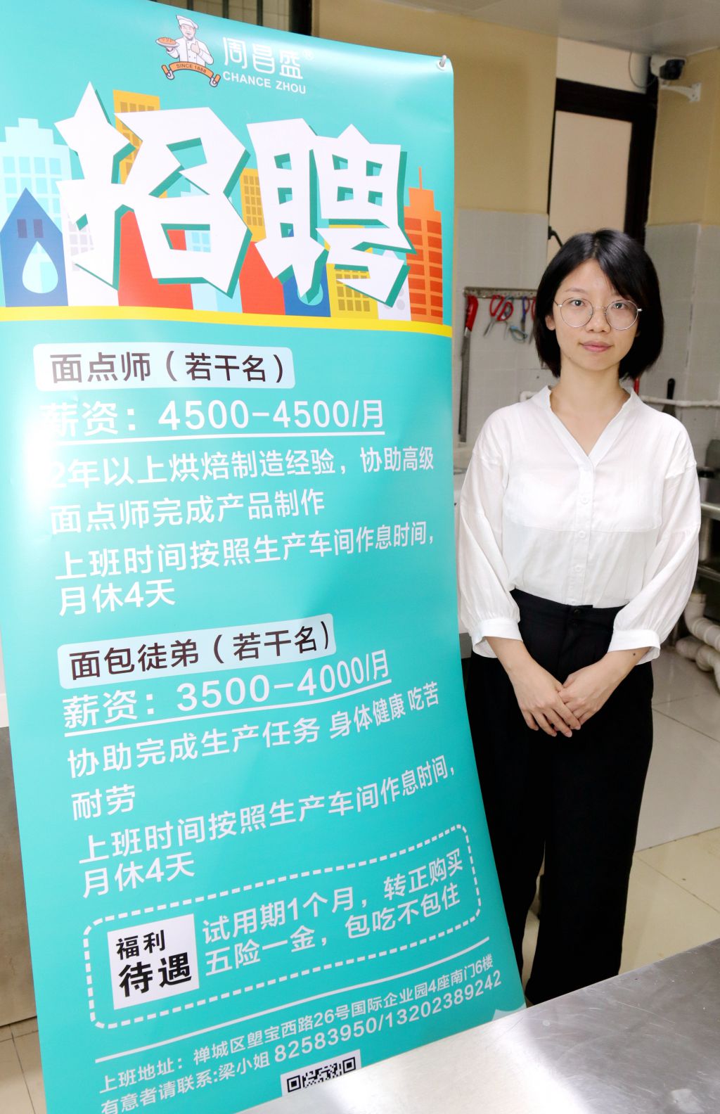 機會面前,展翅學校的面包師學員們興奮之余,不禁有些彷徨,部分于周昌盛面包屋有意的學員聽了對方的招聘講解外,還不忘跟同學輕聲交流,以求通過再三思考確定心中的答案和未來事業前進的方向。