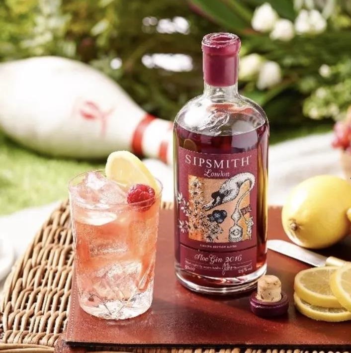 50ml 希普史密斯詩洛金利口酒(黑刺李金酒)、檸檬湯力水、檸檬片、覆盆子。