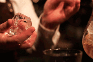 當然,注重內在的同時,也不能忽視了外表。冰除了可以冷卻、稀釋酒,平衡口感外,還璀璨異常!手工雕琢的冰塊,可胖可瘦,可高可矮,形狀可以千奇百怪。切成鉆石形狀的冰,在燈光下晶瑩透亮,美輪美奐。