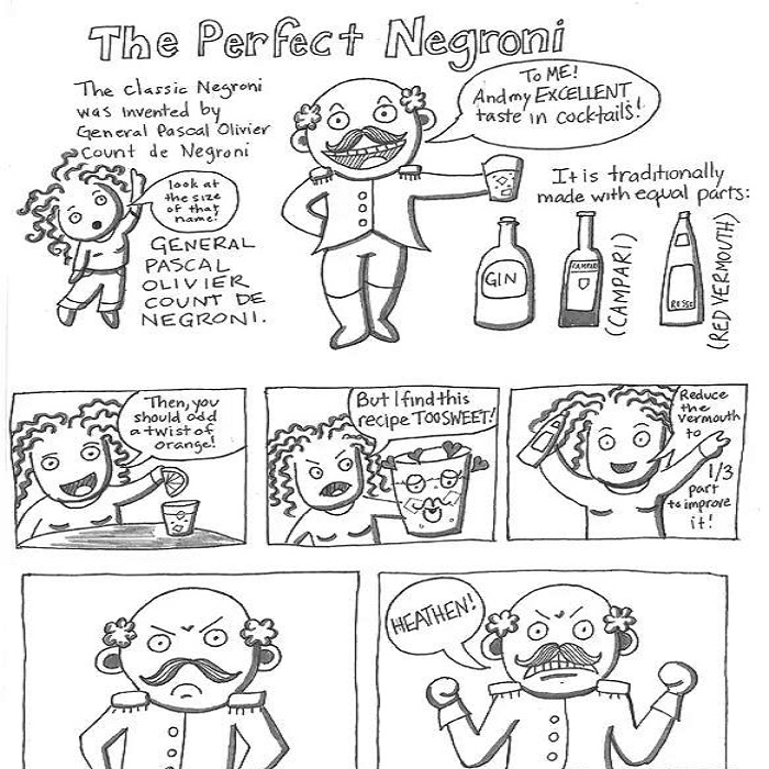 其次,Negroni將Campari的苦和甜味美思的甜,金酒的烈與香完美的進行了平衡。Gary Regan在2003年的The Joy of Mixology一書中寫道“不用測量這三款酒的比例,他們已經達到了最好的平衡...這三種等量的成分是達到平衡的必要條件。”有一些人錯誤的用shake的手法來調制雞尾酒,或者用檸檬皮來做裝飾,這些都是不可取的,甚至是一種罪過。