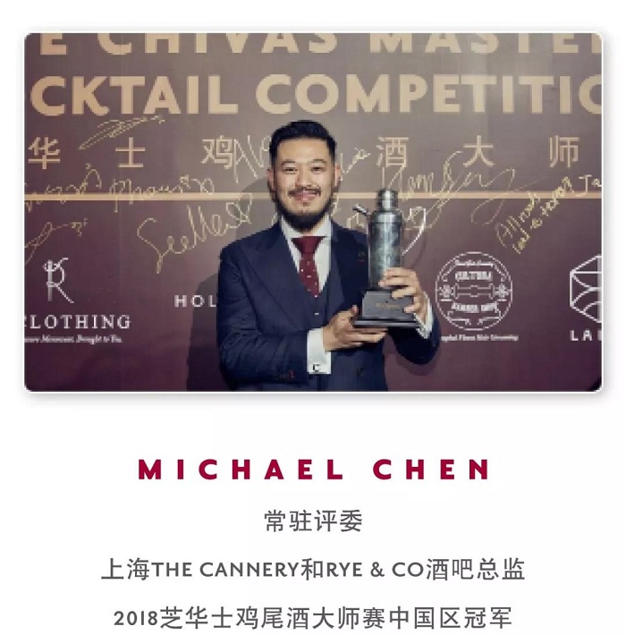 每場資格賽均由3位評委進行評判:中國區(qū)品牌大使Craig Swindell、2018芝華士雞尾酒大師賽中國區(qū)冠軍Michael Chen加一位區(qū)域賽評委。