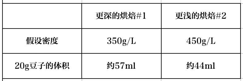 1、 即使生豆不一樣,其實(shí)你也可以通過直接測量熟豆密度,協(xié)助判斷一款既定熟豆的體積。