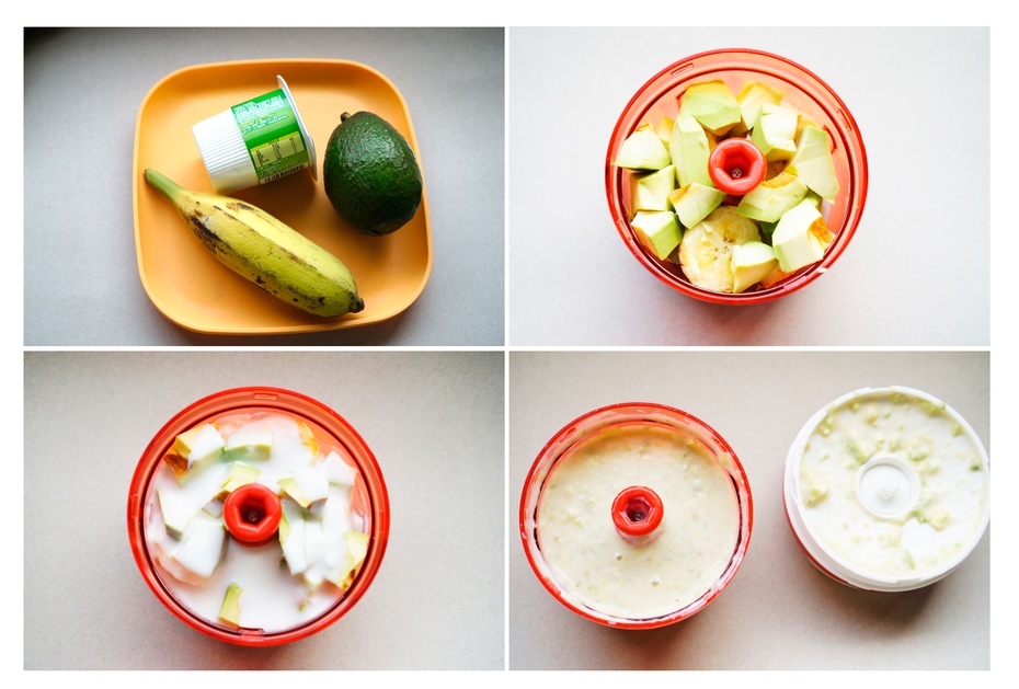 3.將切好的香蕉、牛油果、酸奶一起放入料理機內