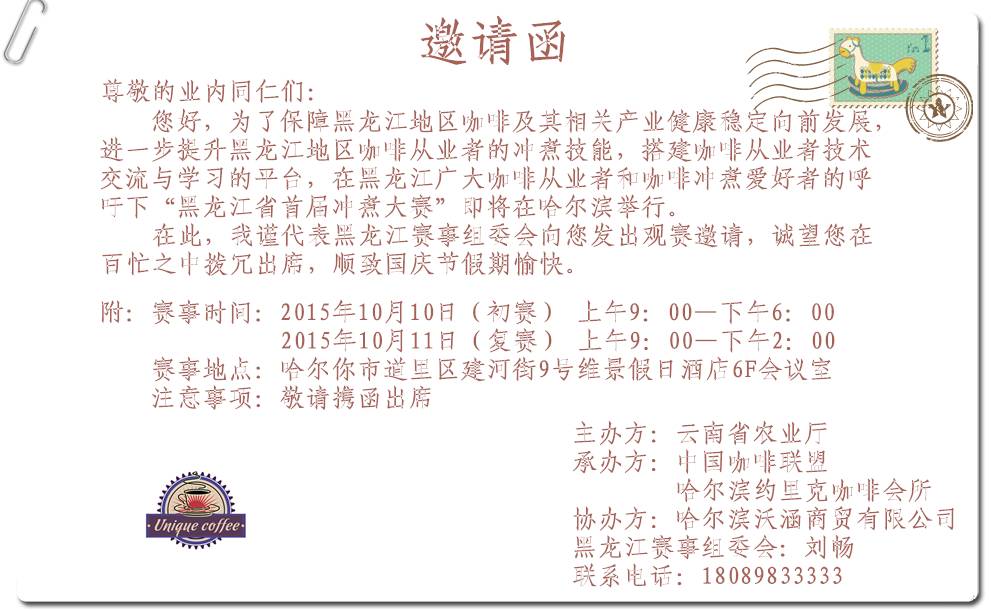 承辦單位:中國咖啡聯盟、哈爾濱約里克咖啡會所
