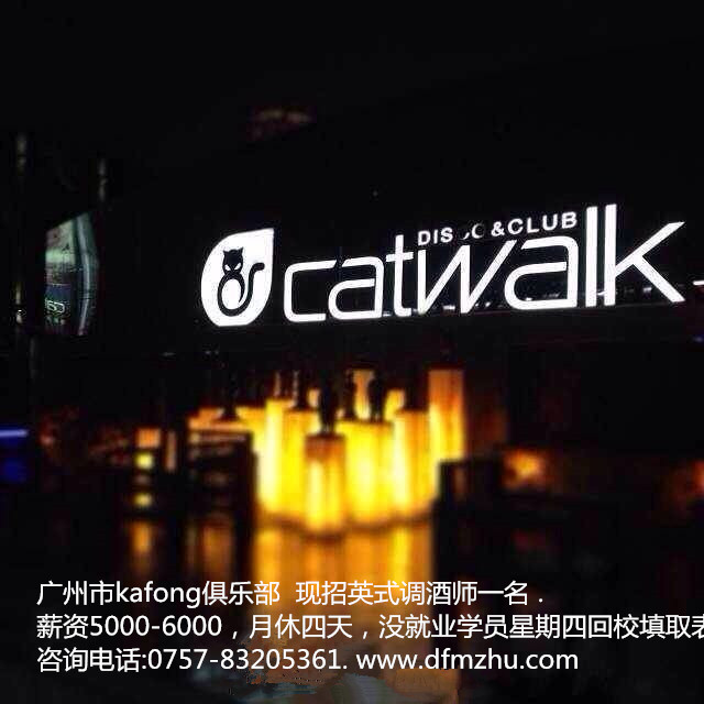 廣州市kafong俱樂部  現招英式調酒師一名 .