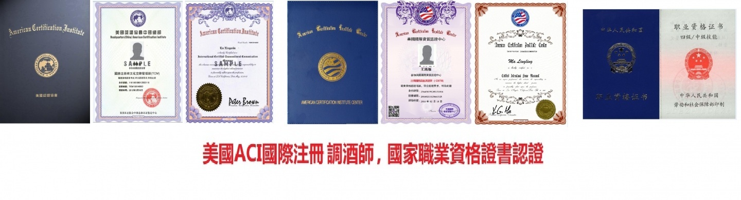 | 《英式、日式、美式調酒服務流程》 | 《常用混合飲料的制作》 | 《世界名酒基礎知識教學、伏特加、朗姆酒、金酒、特基拉、白蘭地、威士忌等》 |
